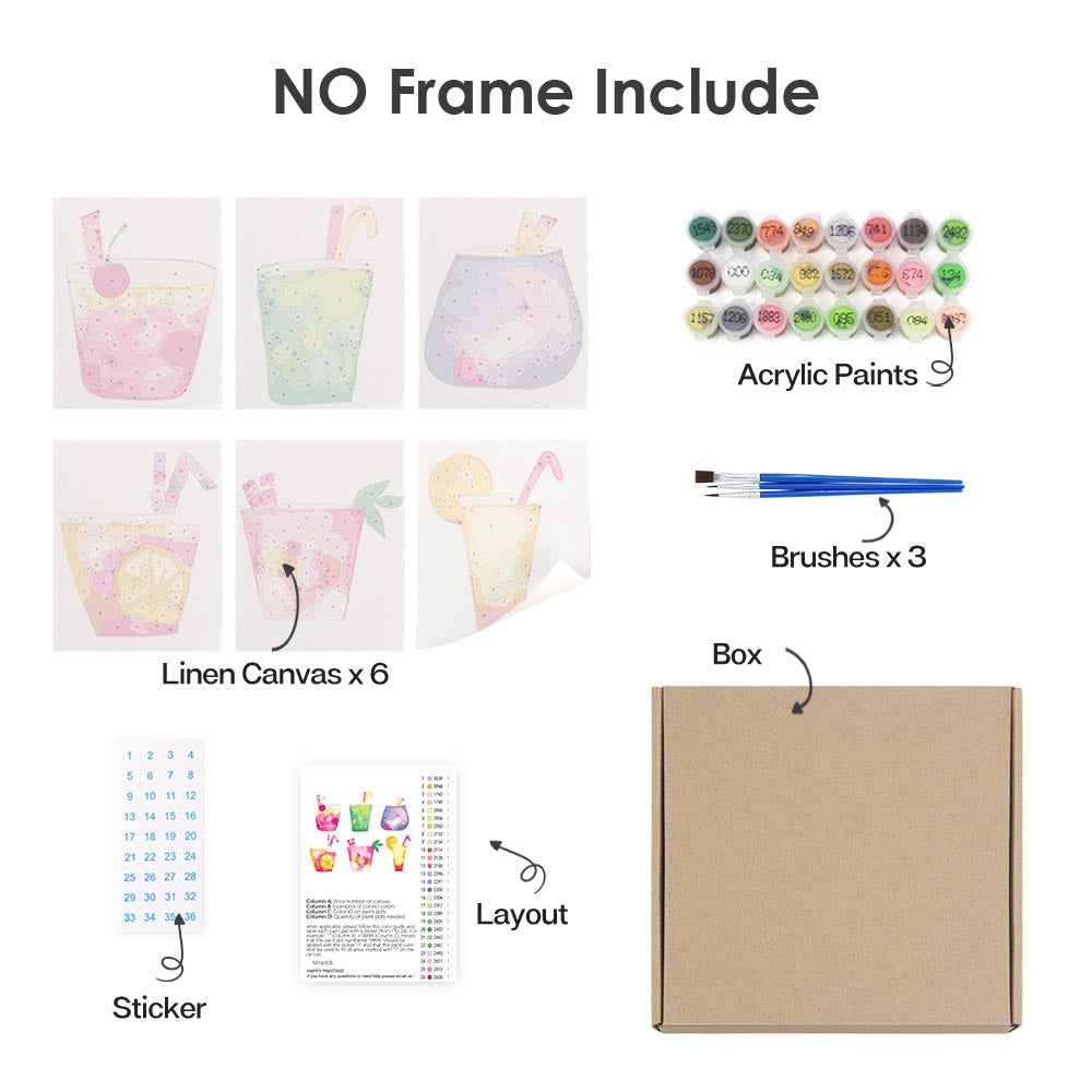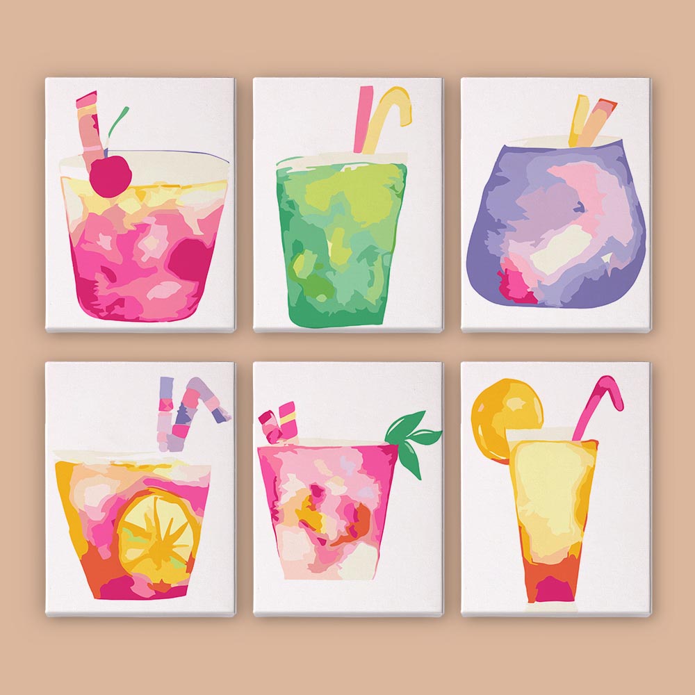 Paint by Numbers – 6 Mini Paintings | Abstract Summer Cocktails Set
