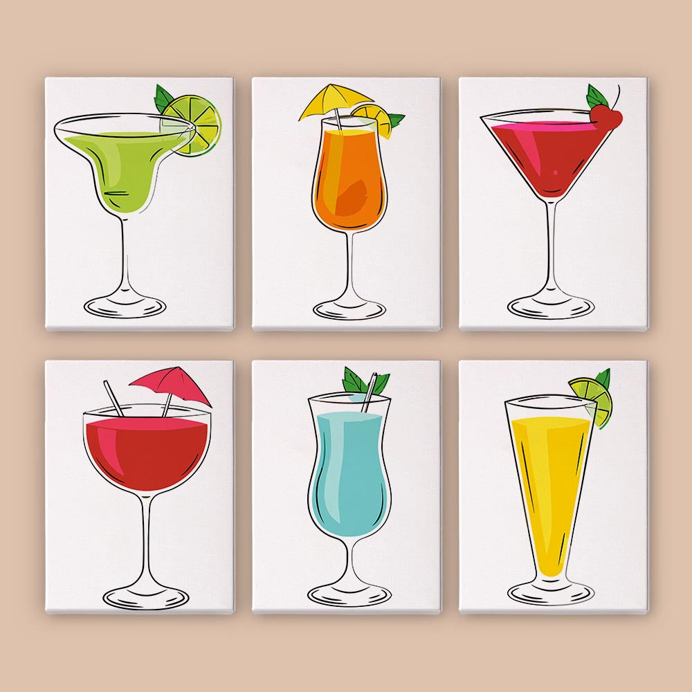 Paint by Numbers – 6 Mini Paintings | Classic Cocktail Glasses Set