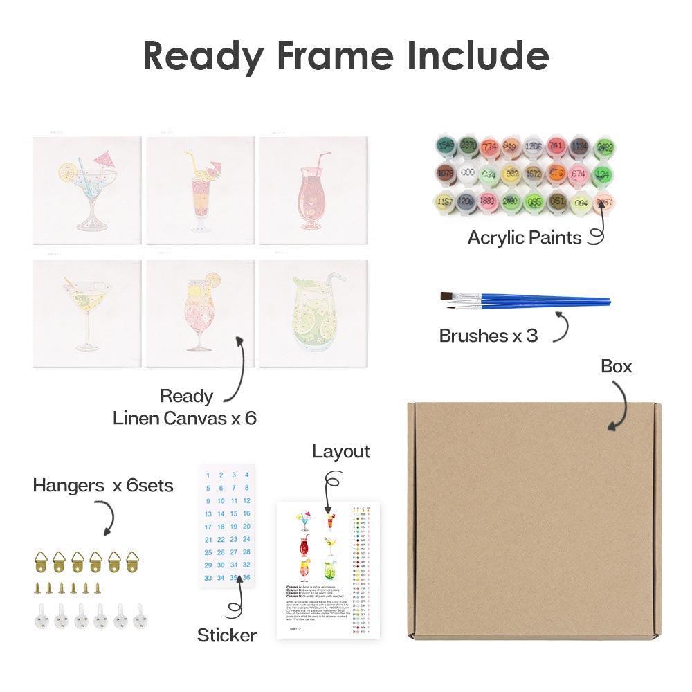 Paint by Numbers – 6 Mini Paintings | Colorful Cocktails Collection