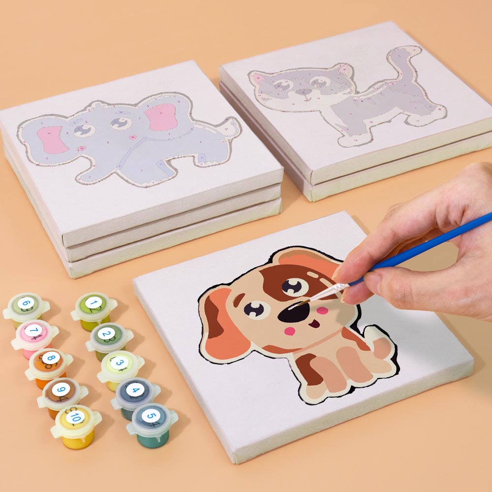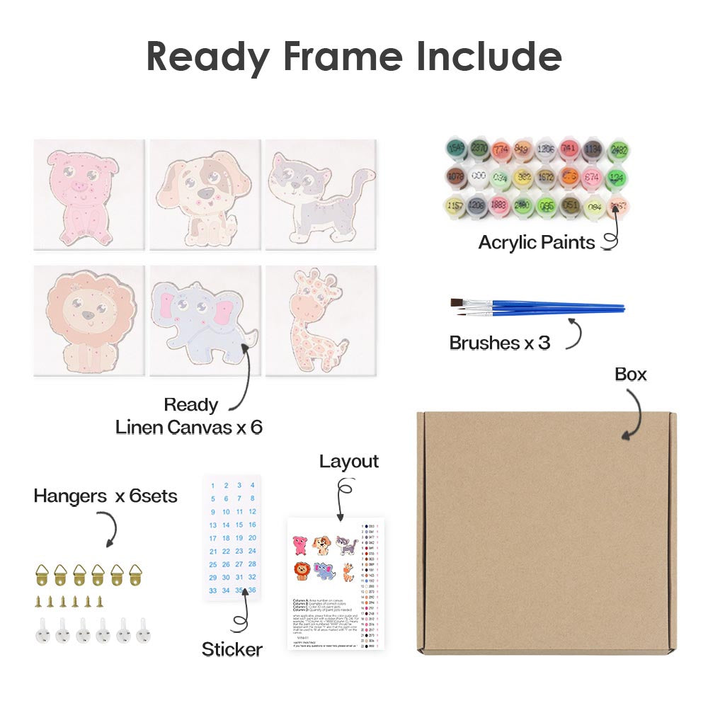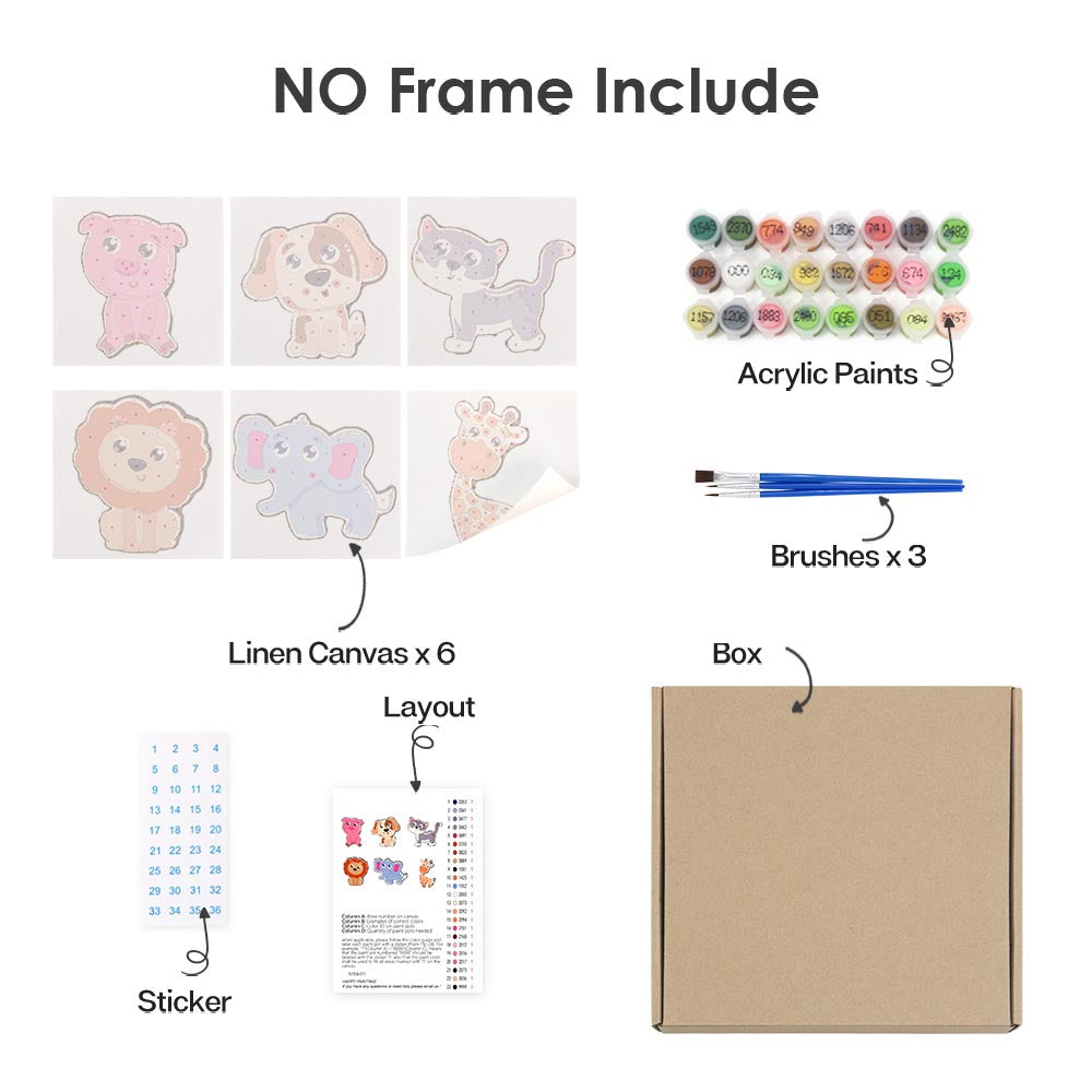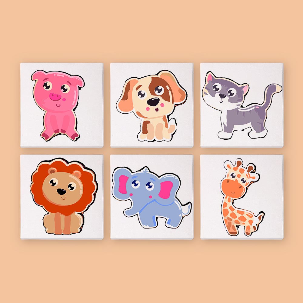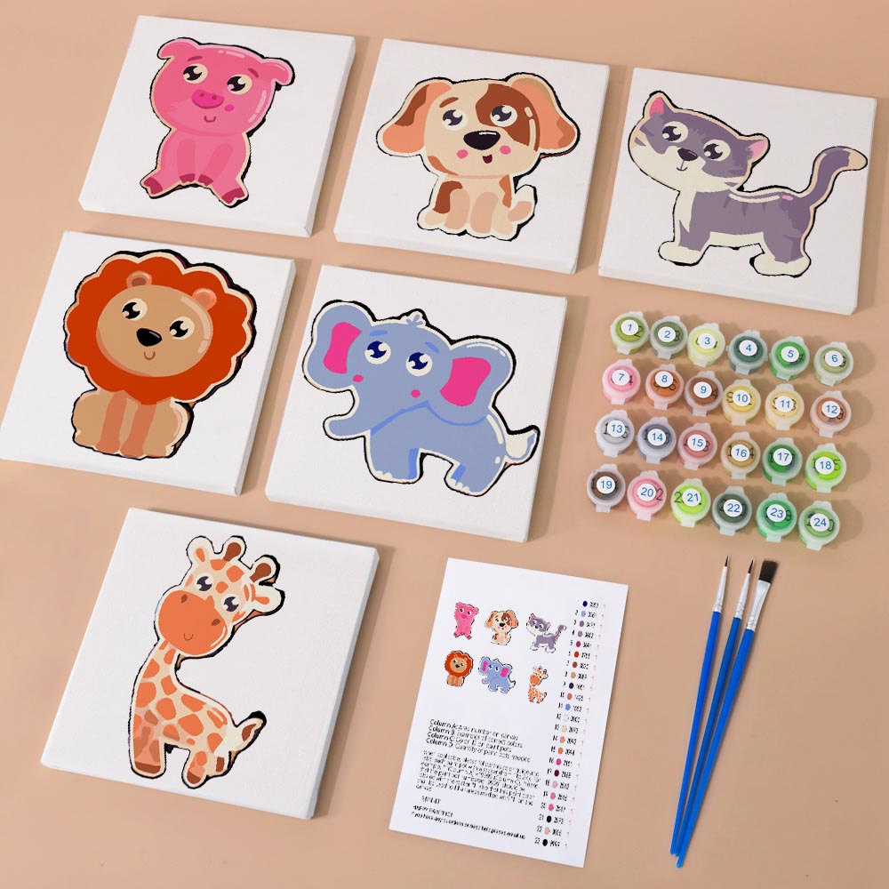 Paint by Numbers – 6 Mini Paintings | Cute Cartoon Animals Set