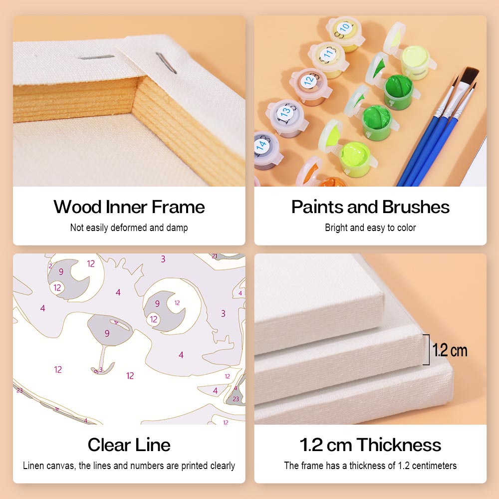 Whether you’re new to paint-by-numbers or a seasoned hobby artist, our all-in-one kits make painting effortless. Each canvas features clearly numbered outlines, matched acrylic paints, three brush sizes, and a simple step-by-step guide. Create stunning artworks in no time—ideal for relaxing, sparking creativity, and crafting personalized gifts!