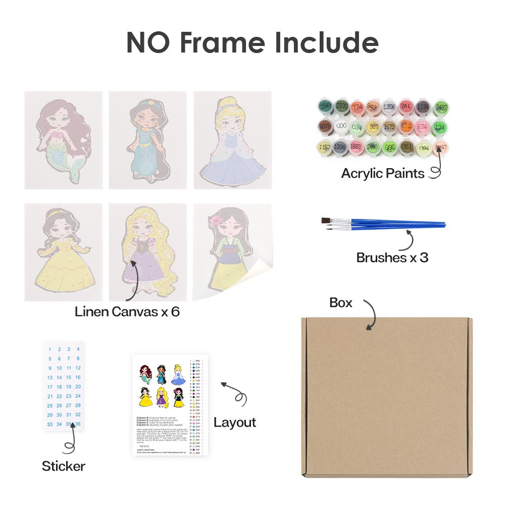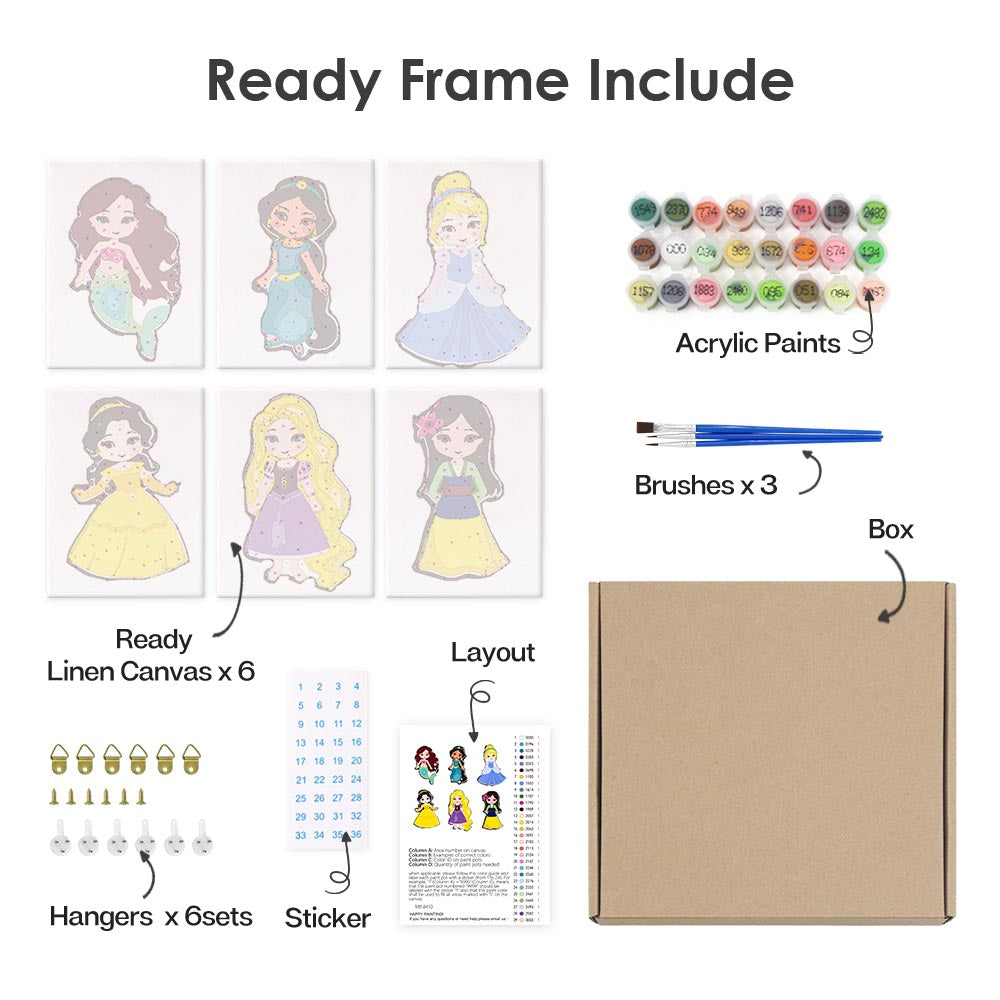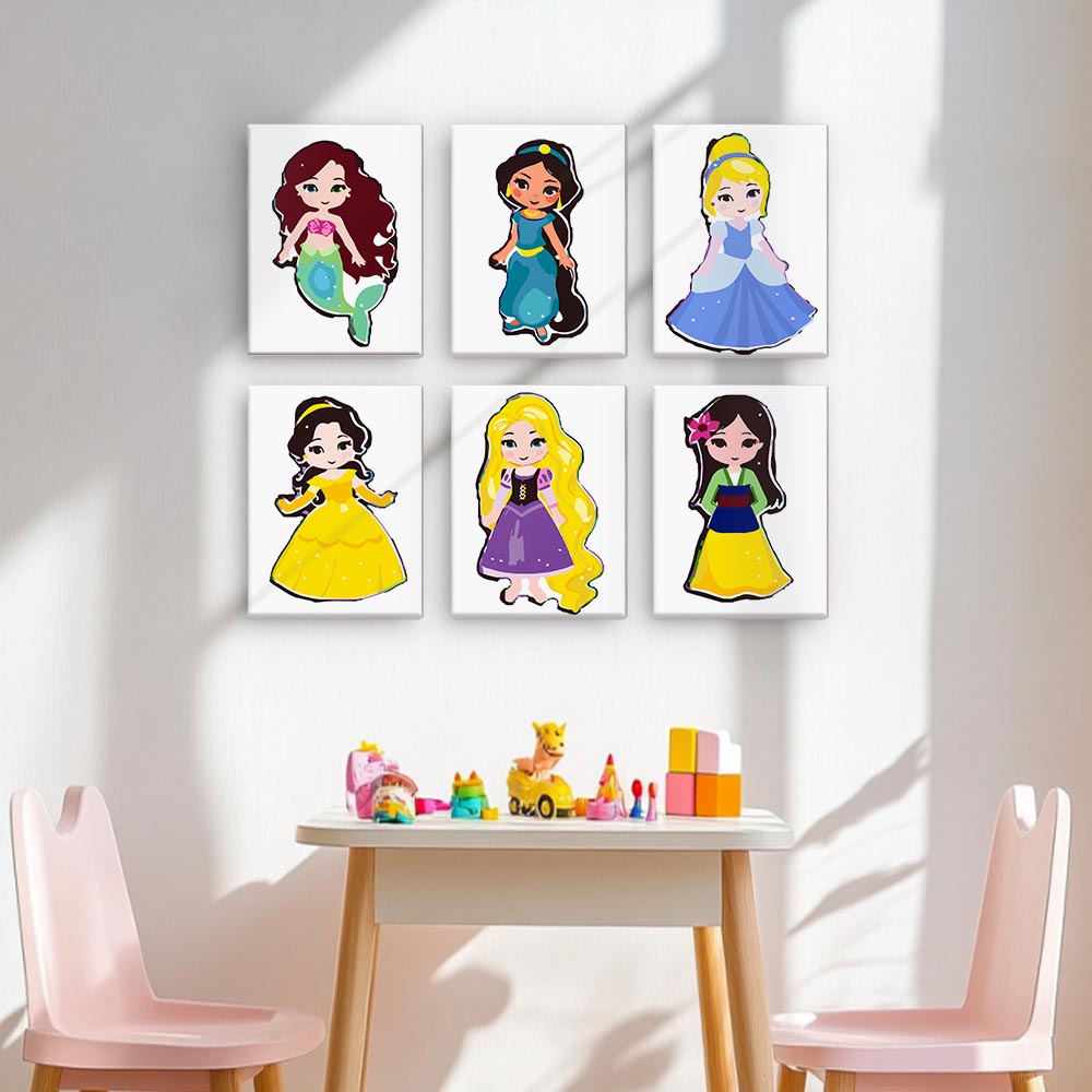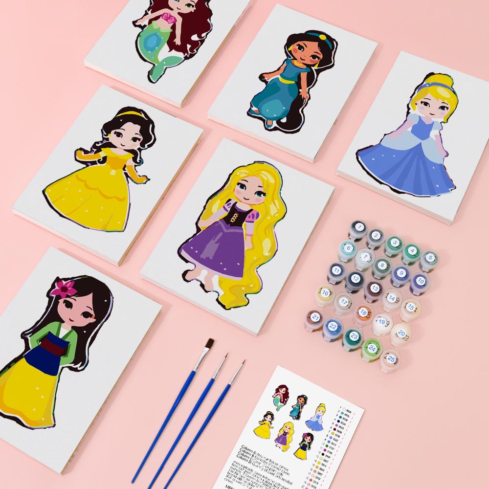 Paint by Numbers – 6 Mini Paintings | Cute Princess Characters Set