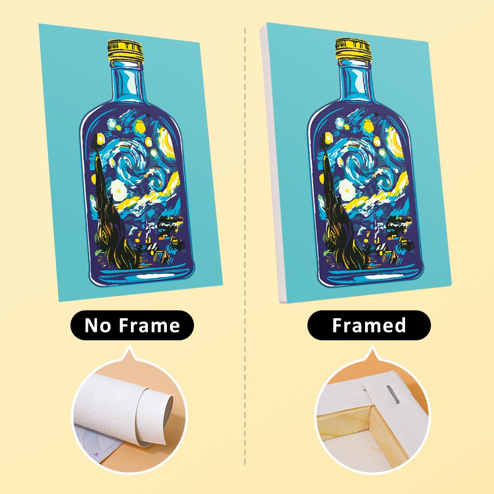 - Without frame: A standard rolled canvas that can be framed or displayed as you like.