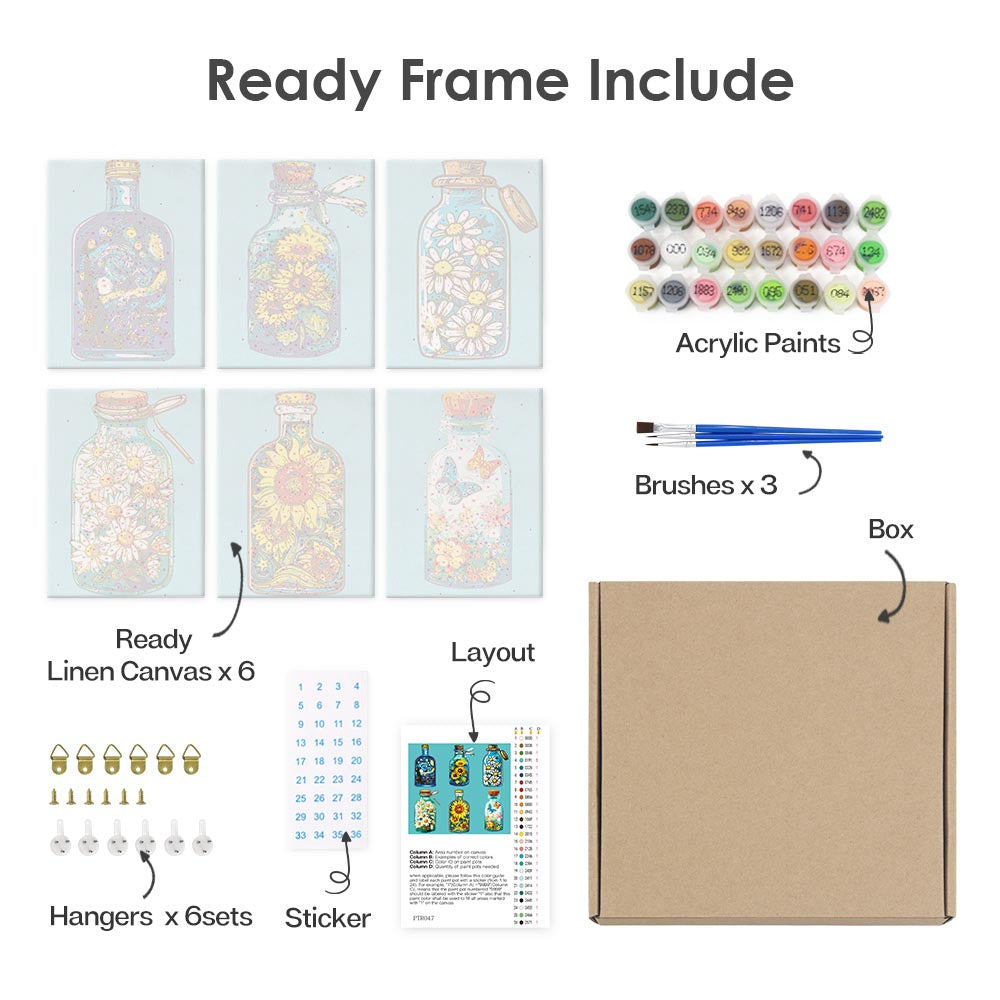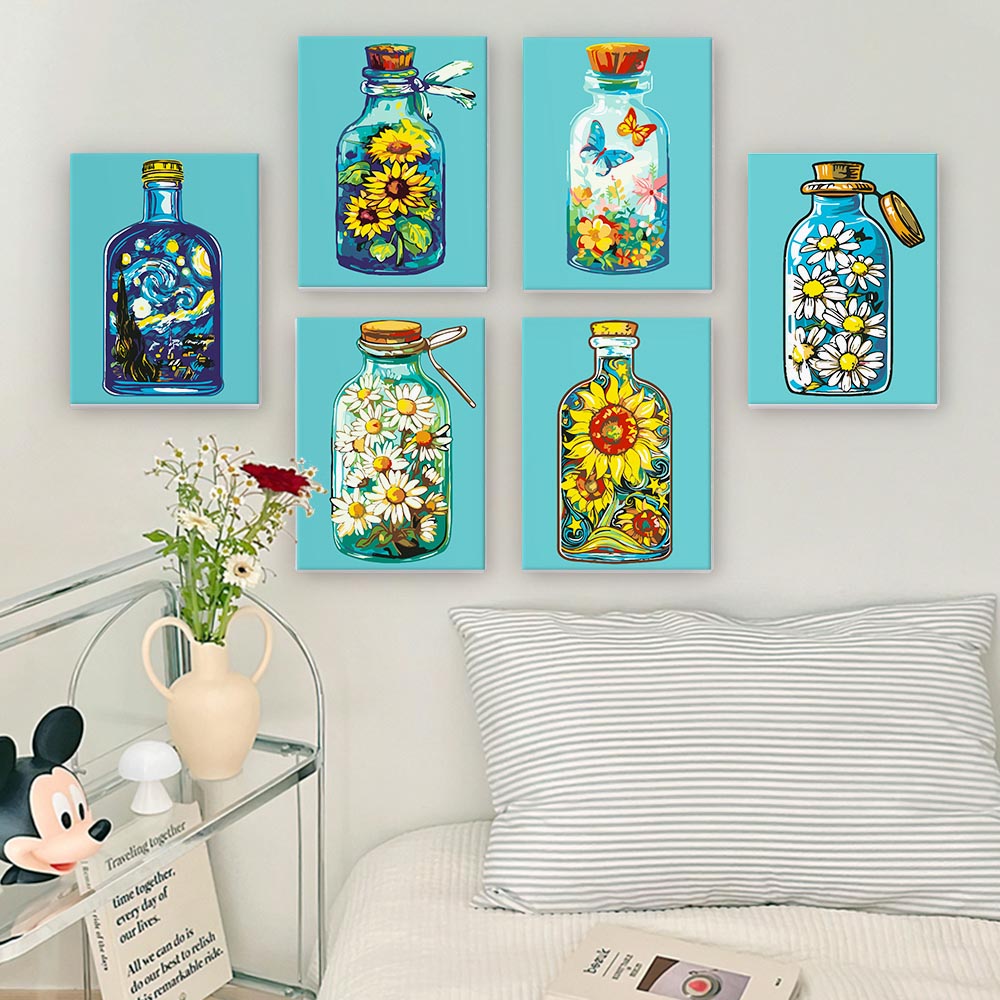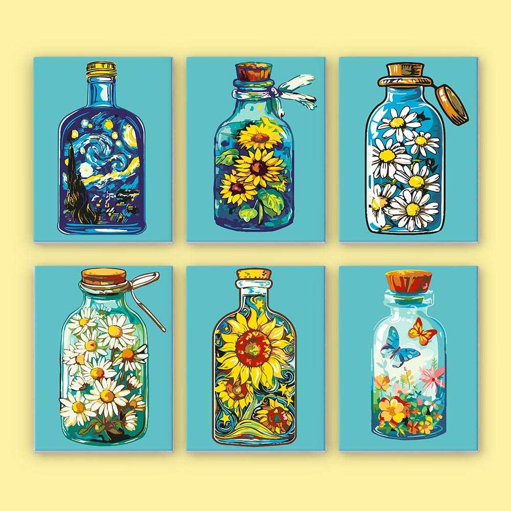 Paint by Numbers – 6 Mini Paintings | Flower Bottles Collection