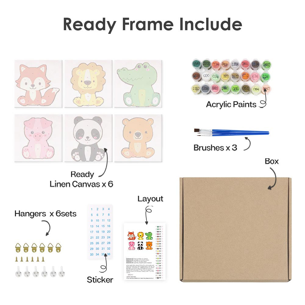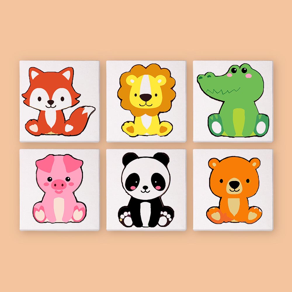 Paint by Numbers – 6 Mini Paintings | Kawaii Animal Friends Set