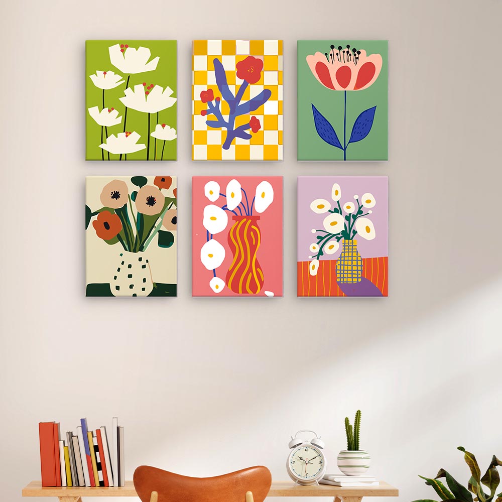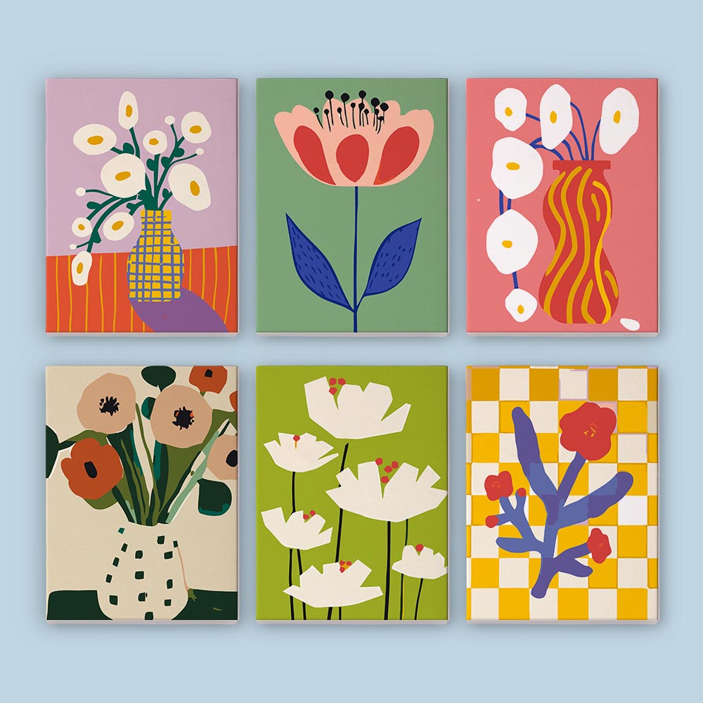 Paint by Numbers – 6 Mini Paintings | Modern Floral Pop Art Set