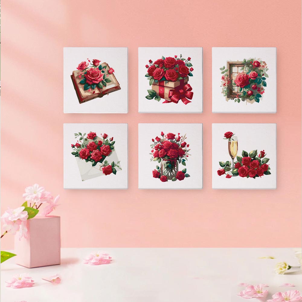 Paint by Numbers – 6 Mini Paintings | Red Rose Romance Set