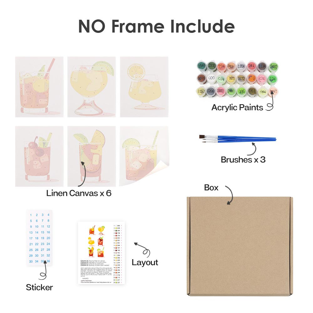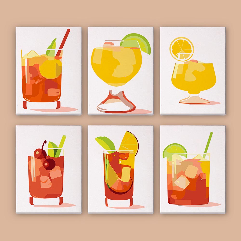 Paint by Numbers – 6 Mini Paintings | Refreshing Summer Cocktails Set