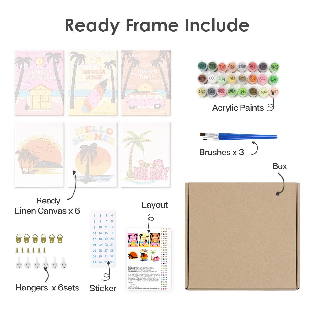 Paint by Numbers – 6 Mini Paintings | Retro Summer Holiday Set