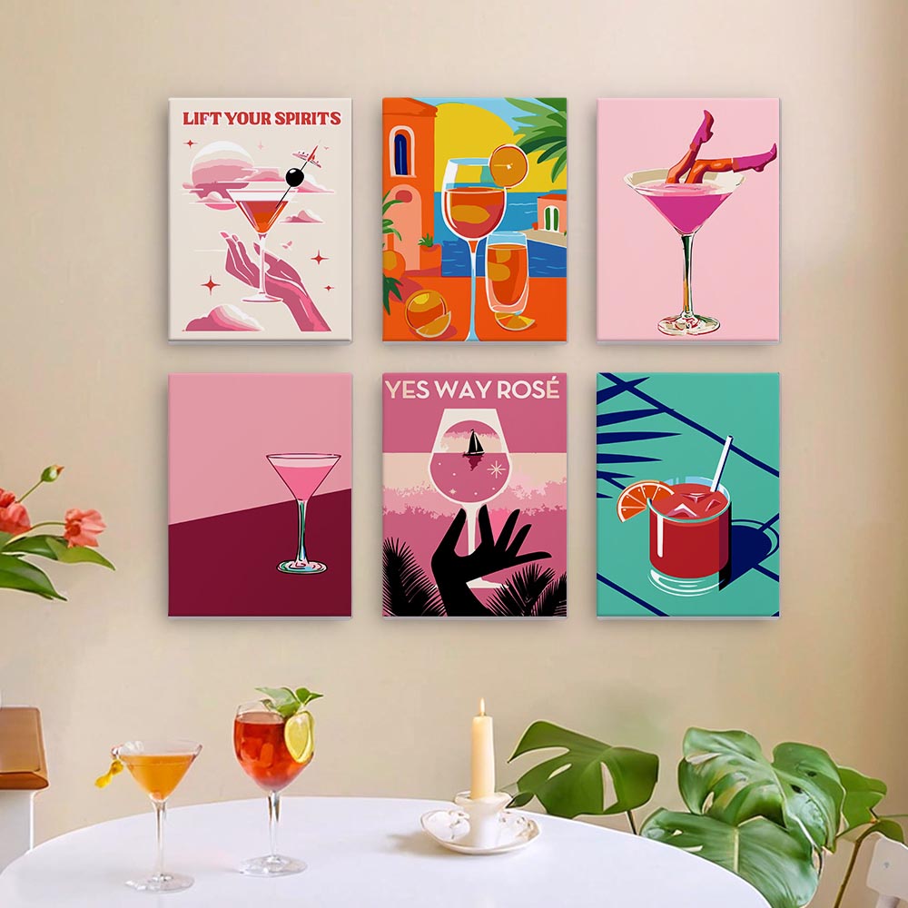 Paint by Numbers – 6 Mini Paintings | Rosé & Sunset Cocktails Set