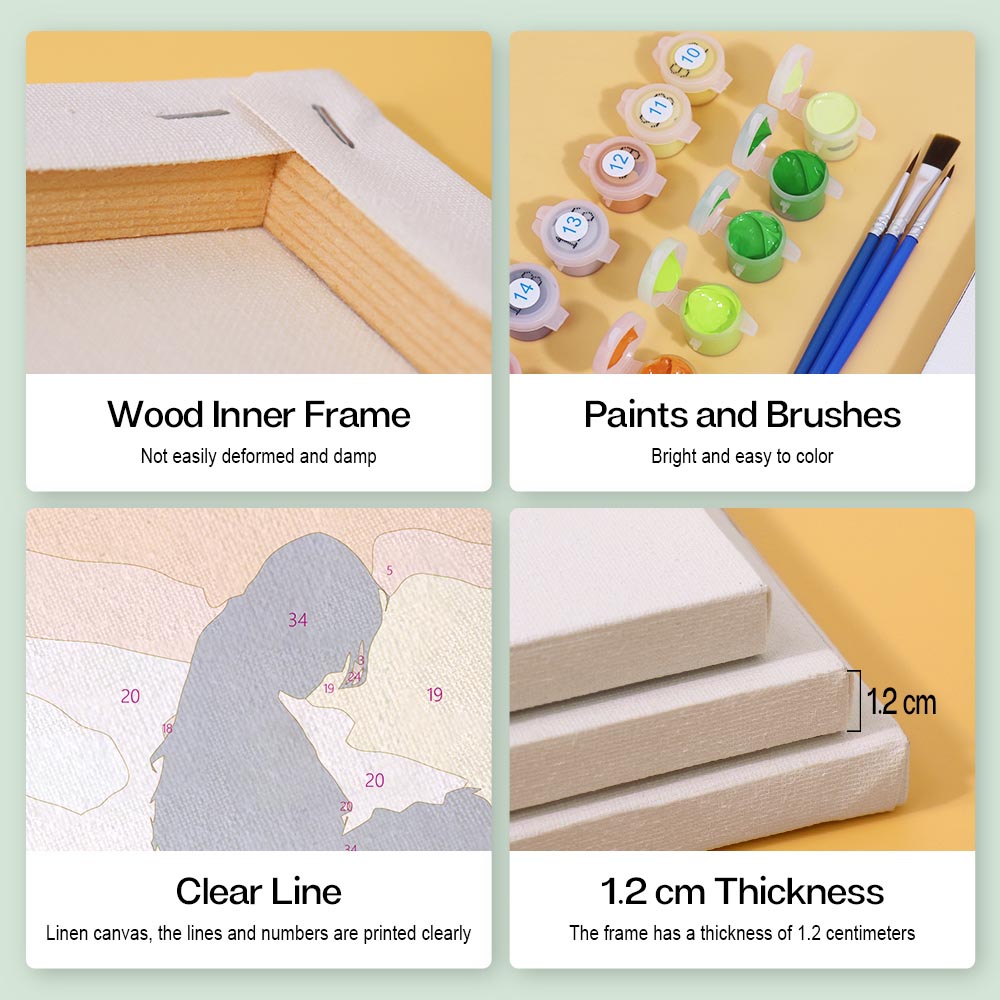 Whether you’re new to paint-by-numbers or a seasoned hobby artist, our all-in-one kits make painting effortless. Each canvas features clearly numbered outlines, matched acrylic paints, three brush sizes, and a simple step-by-step guide. Create stunning artworks in no time—ideal for relaxing, sparking creativity, and crafting personalized gifts!