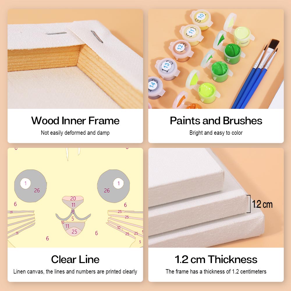 Whether you’re new to paint-by-numbers or a seasoned hobby artist, our all-in-one kits make painting effortless. Each canvas features clearly numbered outlines, matched acrylic paints, three brush sizes, and a simple step-by-step guide. Create stunning artworks in no time—ideal for relaxing, sparking creativity, and crafting personalized gifts!