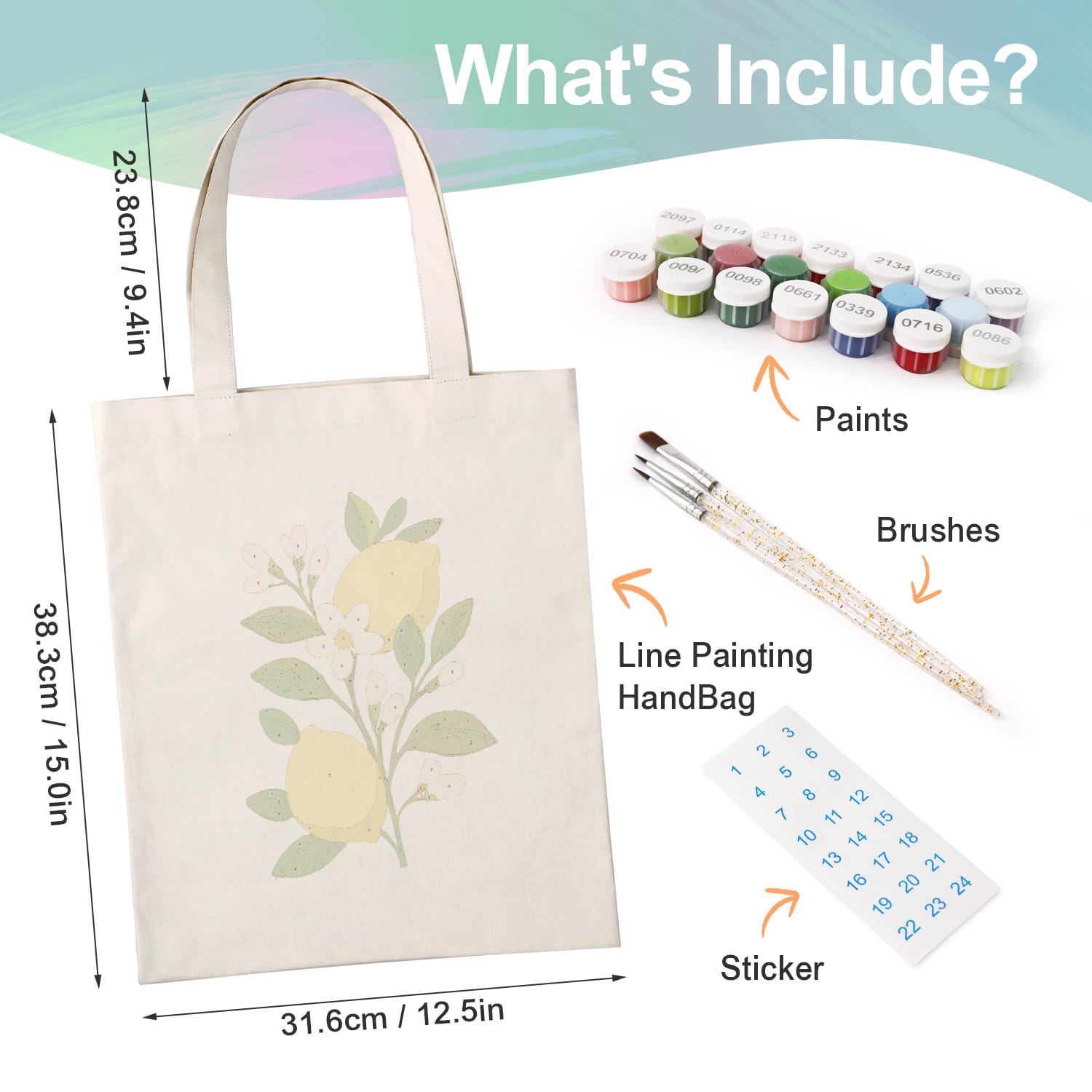 Unleash your creativity and carry it with you – literally! Our Paint by Numbers – DIY Bag | Lemon Zest let you turn a simple tote into a unique, hand-painted statement piece. Each set includes a durable, high-quality fabric bag with a pre-printed line-art design and clearly numbered sections. Just match paint to number and enjoy a soothing, step-by-step painting experience.