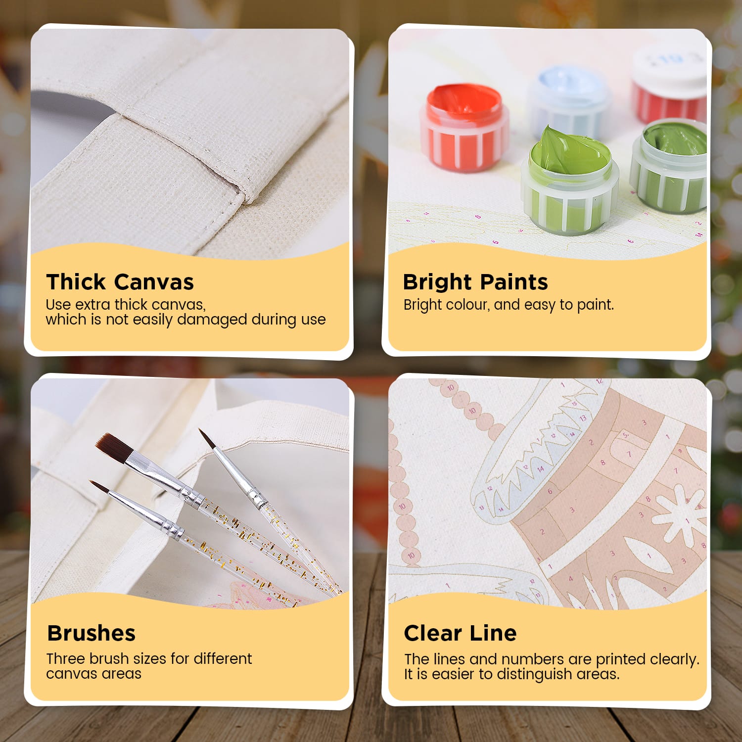 Unleash your creativity and carry it with you – literally! Our Paint by Numbers – DIY Totebag | Winter Mittens let you turn a simple tote into a unique, hand-painted statement piece. Each set includes a durable, high-quality fabric bag with a pre-printed line-art design and clearly numbered sections. Just match paint to number and enjoy a soothing, step-by-step painting experience.