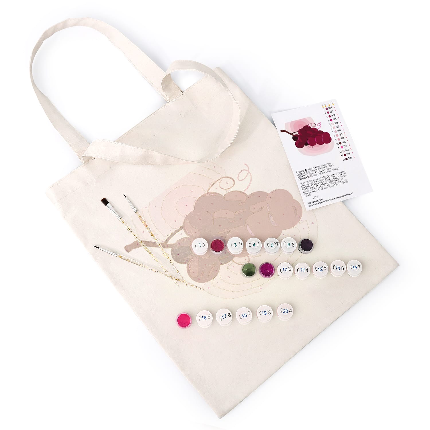 - 1 pre-printed canvas tote bag with numbered design