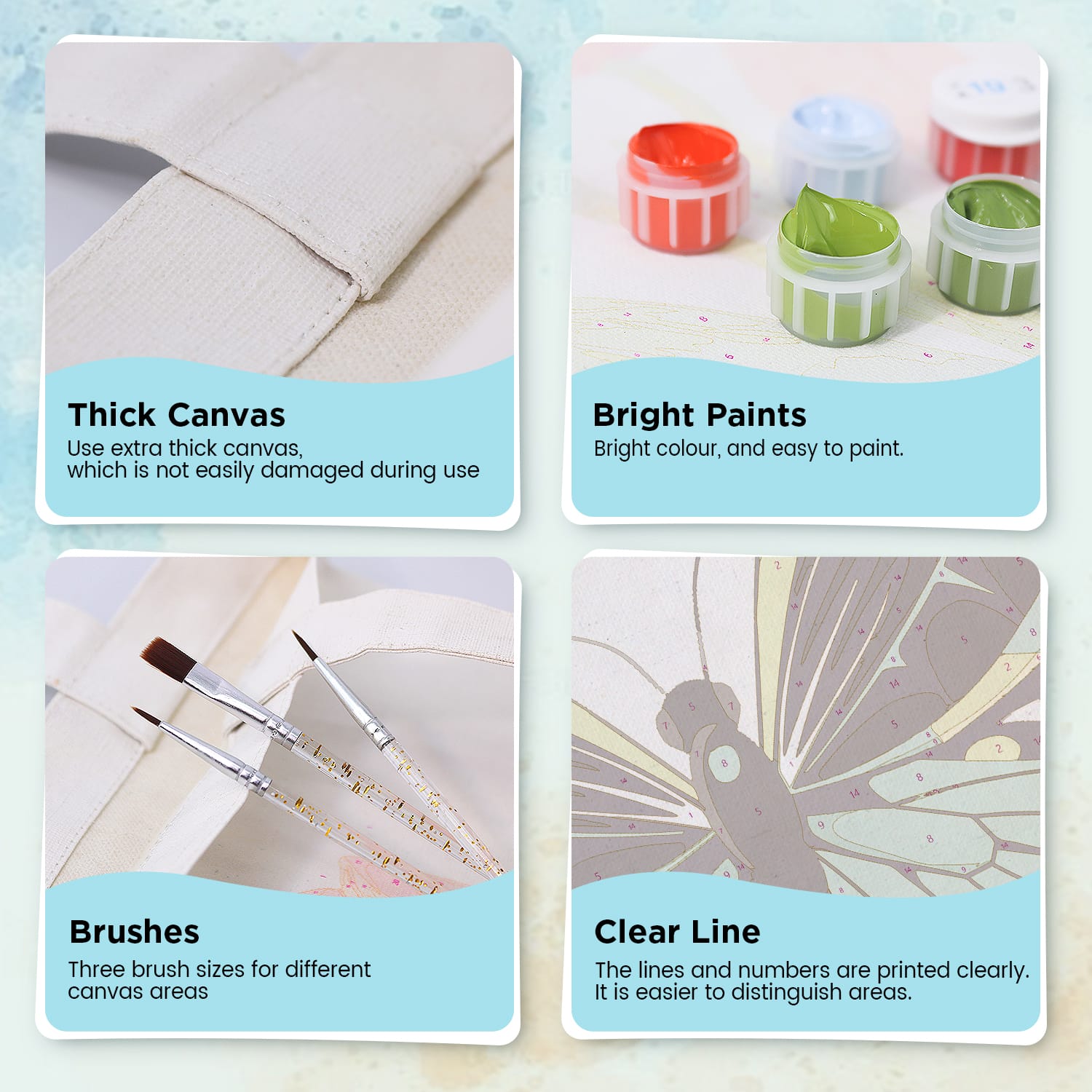Unleash your creativity and carry it with you – literally! Our Paint by Numbers – DIY Totebag | Emerald Butterfly let you turn a simple tote into a unique, hand-painted statement piece. Each set includes a durable, high-quality fabric bag with a pre-printed line-art design and clearly numbered sections. Just match paint to number and enjoy a soothing, step-by-step painting experience.