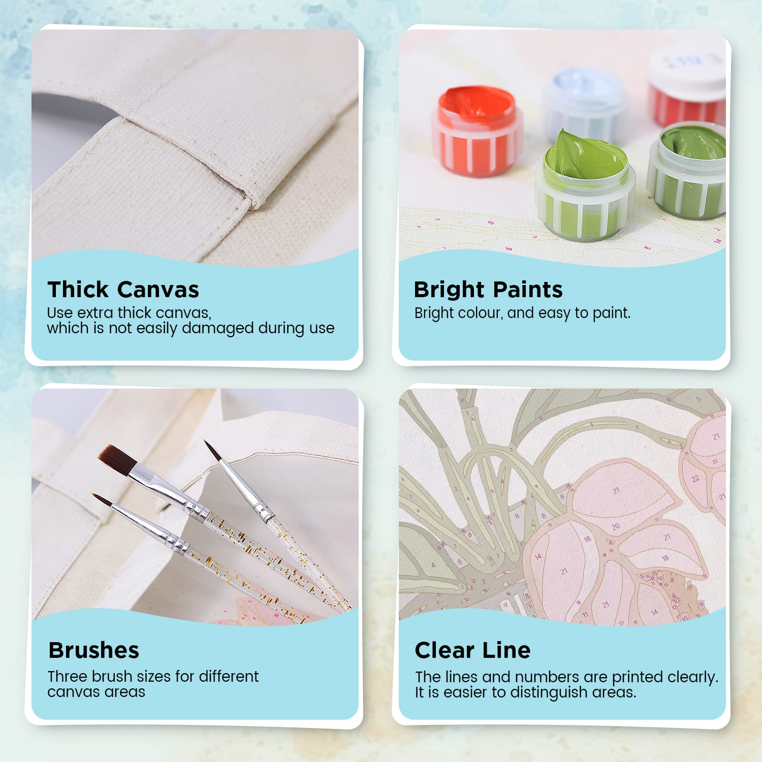 Whether you’re new to paint-by-numbers or a seasoned hobby artist, our all-in-one kits make painting effortless. Each canvas features clearly numbered outlines, matched acrylic paints, three brush sizes, and a simple step-by-step guide. Create stunning artworks in no time—ideal for relaxing, sparking creativity, and crafting personalized gifts!