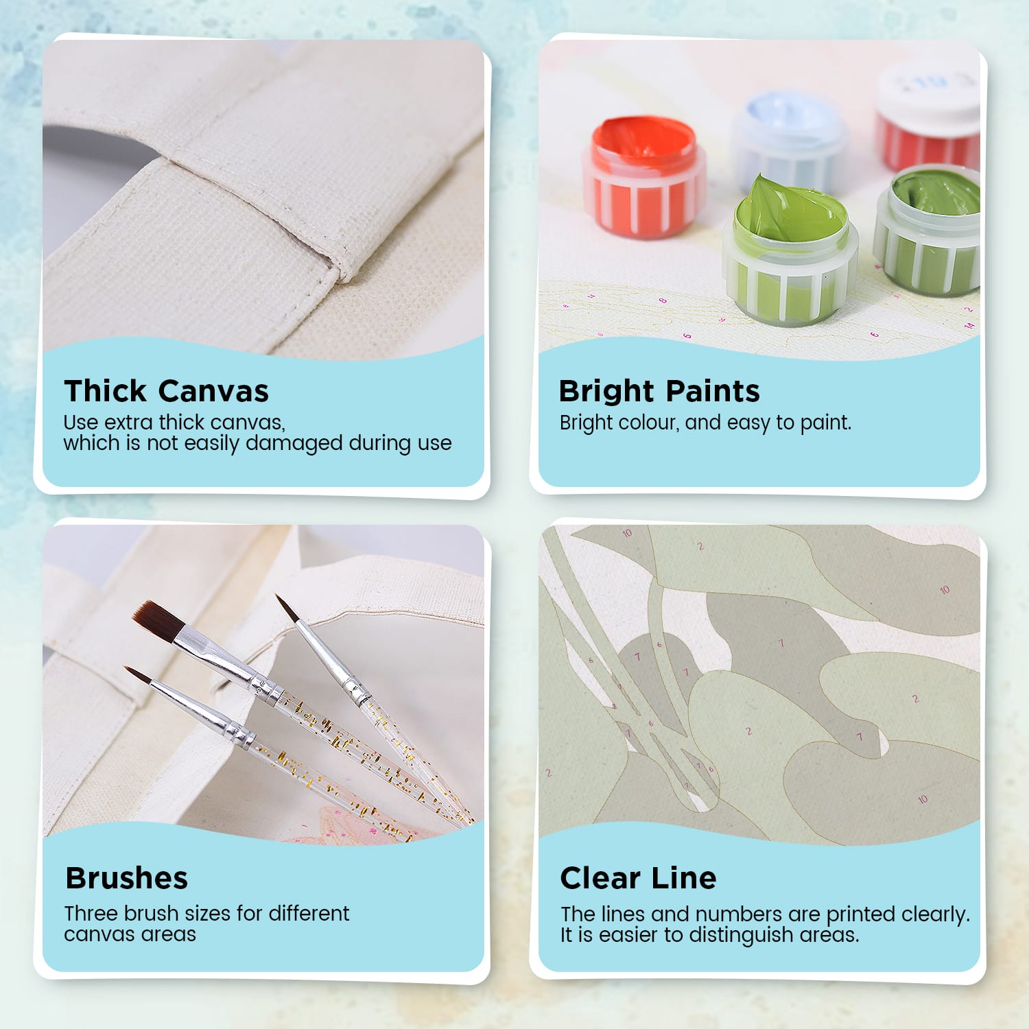Unleash your creativity and carry it with you – literally! Our Paint by Numbers – DIY Totebag | Potted Charm let you turn a simple tote into a unique, hand-painted statement piece. Each set includes a durable, high-quality fabric bag with a pre-printed line-art design and clearly numbered sections. Just match paint to number and enjoy a soothing, step-by-step painting experience.