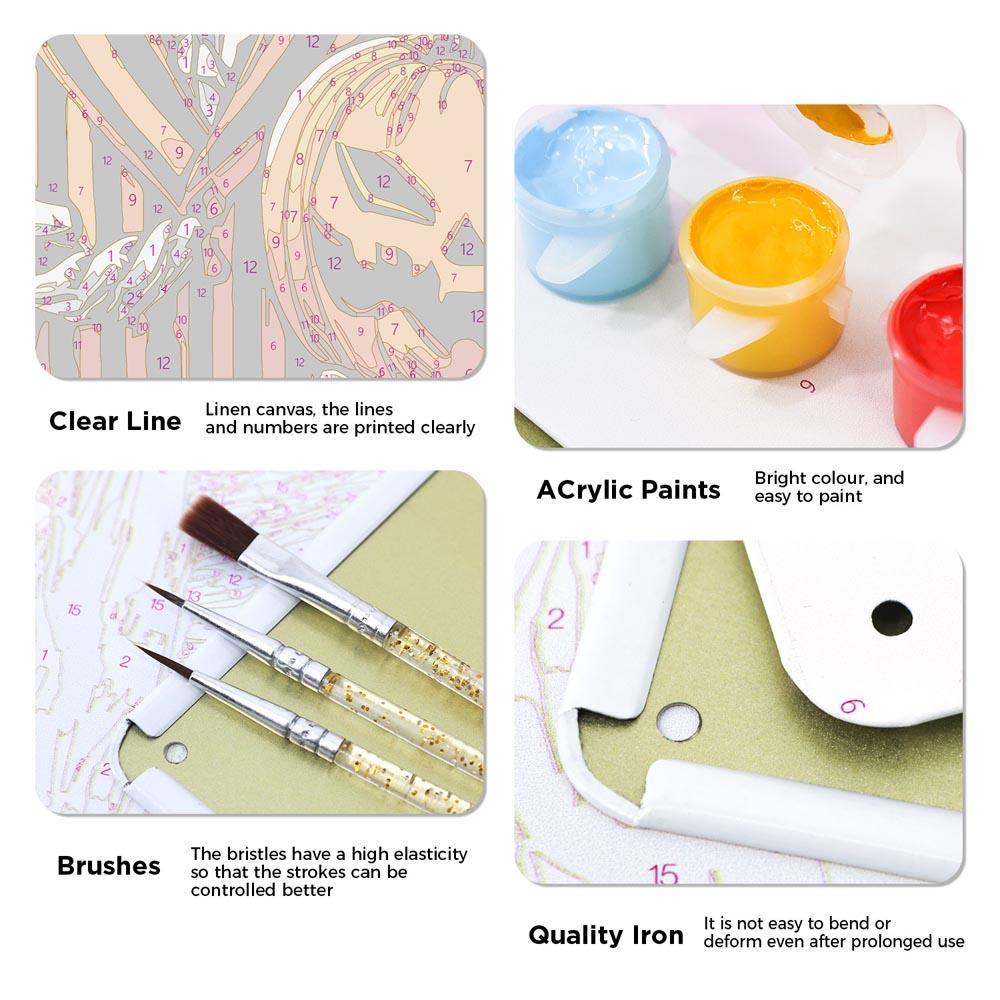 Whether you’re new to paint-by-numbers or a seasoned hobby artist, our all-in-one kits make painting effortless. Each canvas features clearly numbered outlines, matched acrylic paints, three brush sizes, and a simple step-by-step guide. Create stunning artworks in no time—ideal for relaxing, sparking creativity, and crafting personalized gifts!