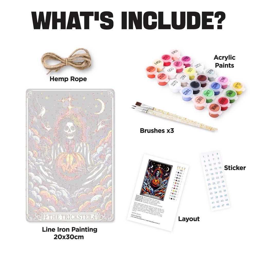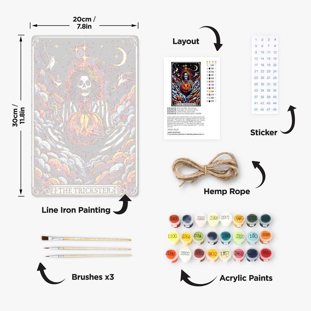 Our Paint by Numbers – Halloween Skeleton Art | The Trickster Moon blend nostalgic charm with hands-on creativity. Each kit features a pre-designed metal sign with numbered sections—just match the numbers to the paint colors and bring the scene to life with every brushstroke.