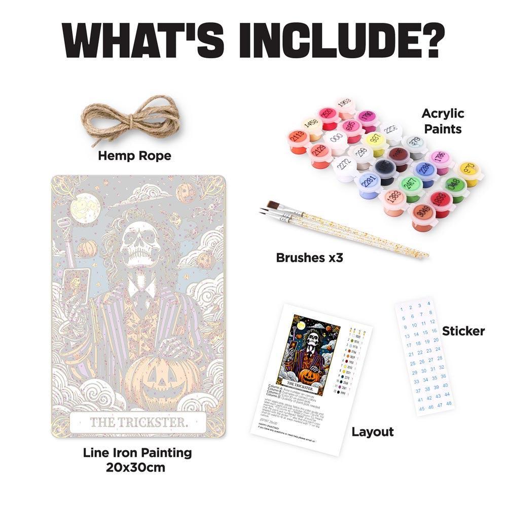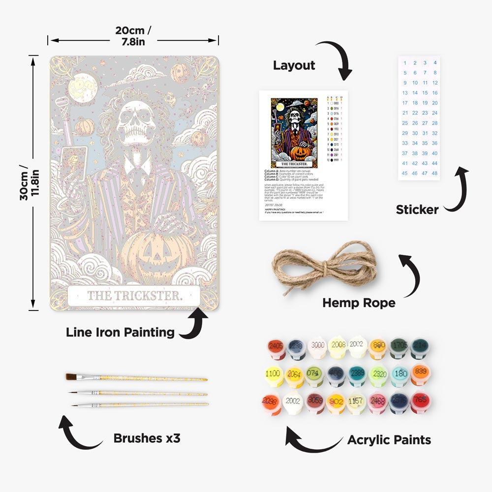 Our Paint by Numbers – Halloween Skeleton Art | The Trickster Night blend nostalgic charm with hands-on creativity. Each kit features a pre-designed metal sign with numbered sections—just match the numbers to the paint colors and bring the scene to life with every brushstroke.