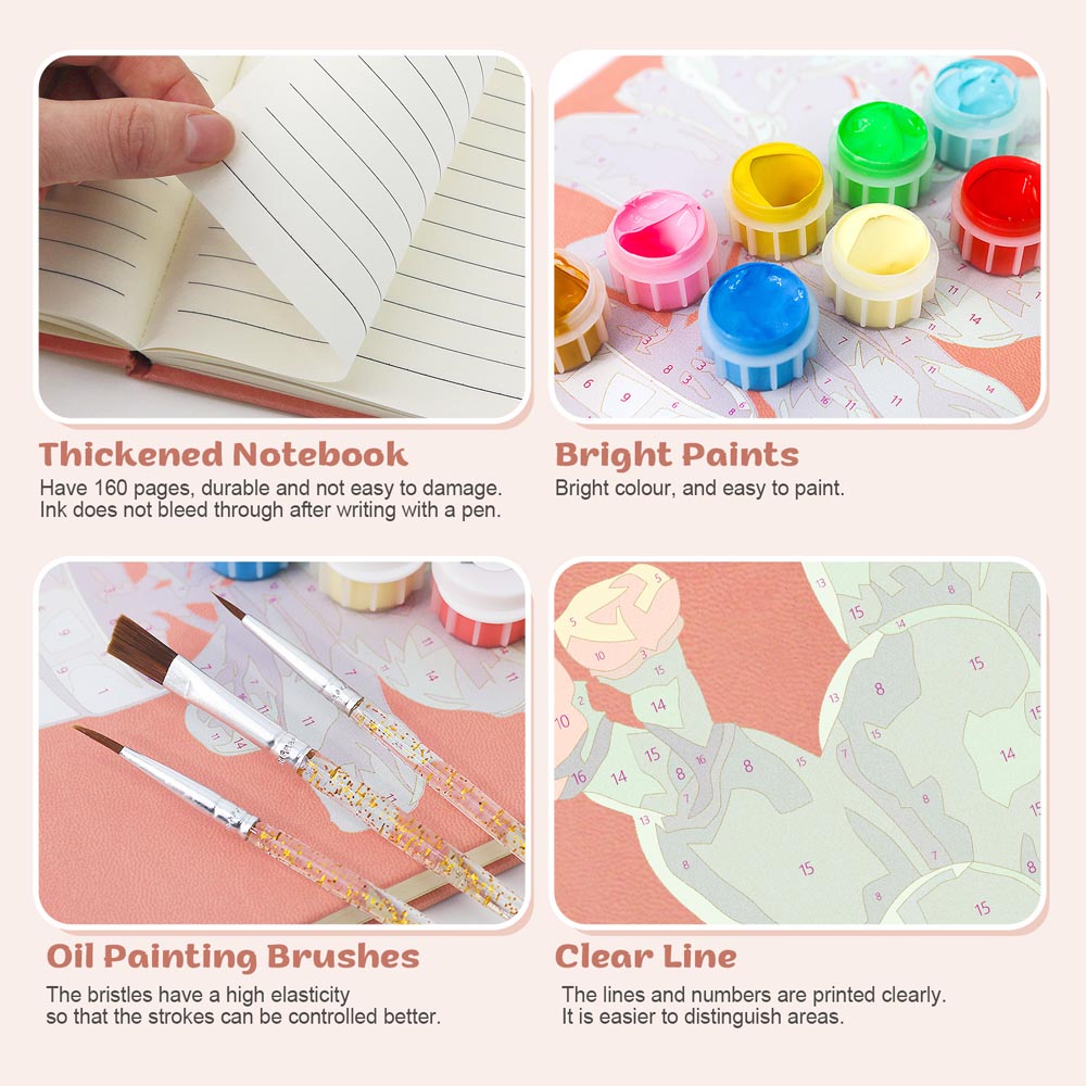 Unleash your creativity with our Paint by Numbers Hardcover Journal Notebook – a unique blend of DIY art and everyday practicality. The first page of the notebook features a fun paint-by-numbers design, allowing you to hand-paint your own stylish cover before using it as your personal journal.