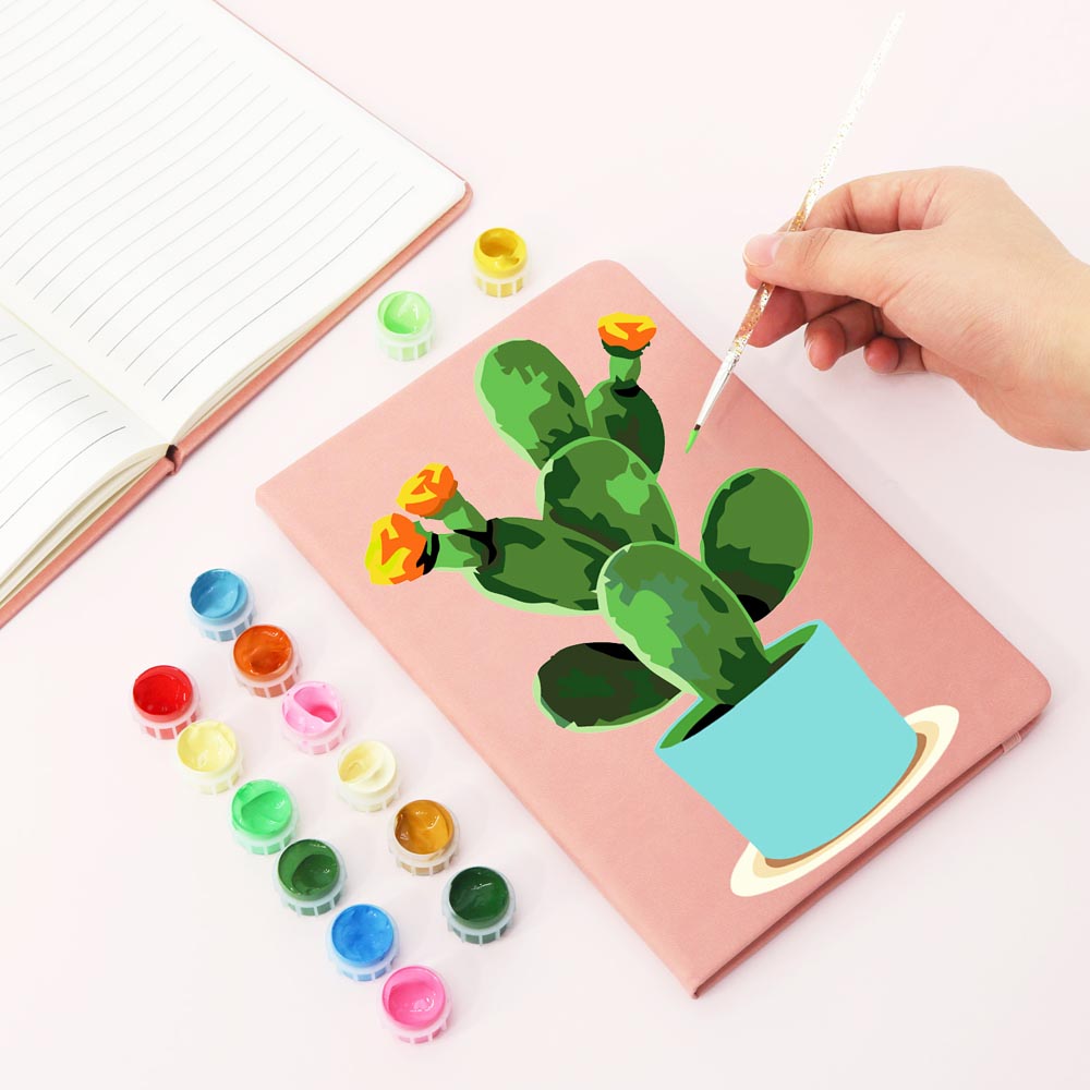 Paint by Numbers Hardcover Journal Notebook - Flowering Cactus