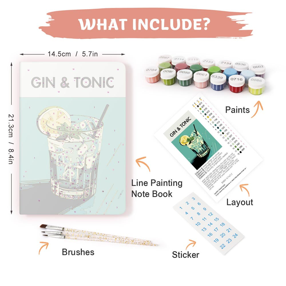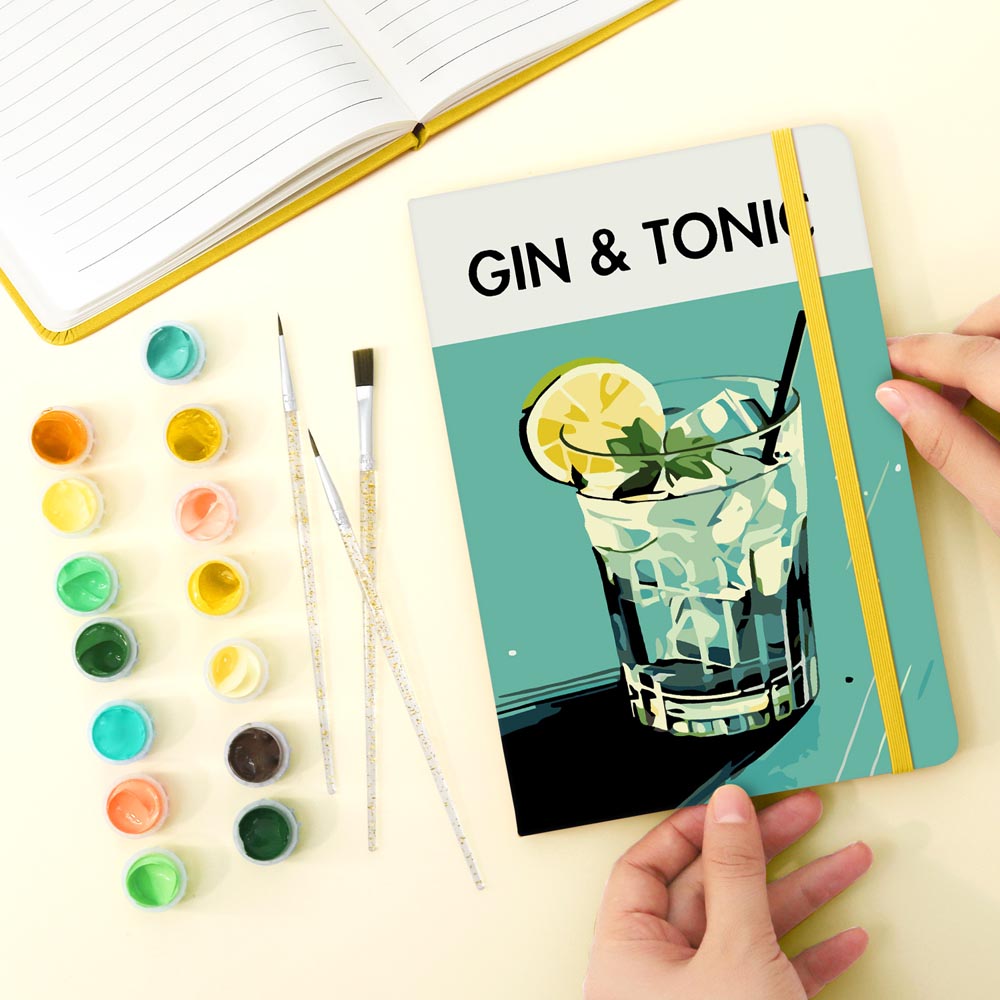 Paint by Numbers Hardcover Journal Notebook - Gin & Tonic Cocktail