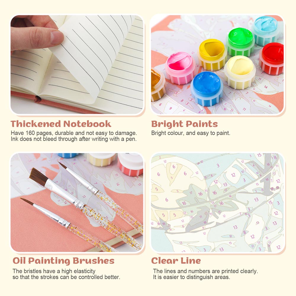 Unleash your creativity with our Paint by Numbers Hardcover Journal Notebook – a unique blend of DIY art and everyday practicality. The first page of the notebook features a fun paint-by-numbers design, allowing you to hand-paint your own stylish cover before using it as your personal journal.