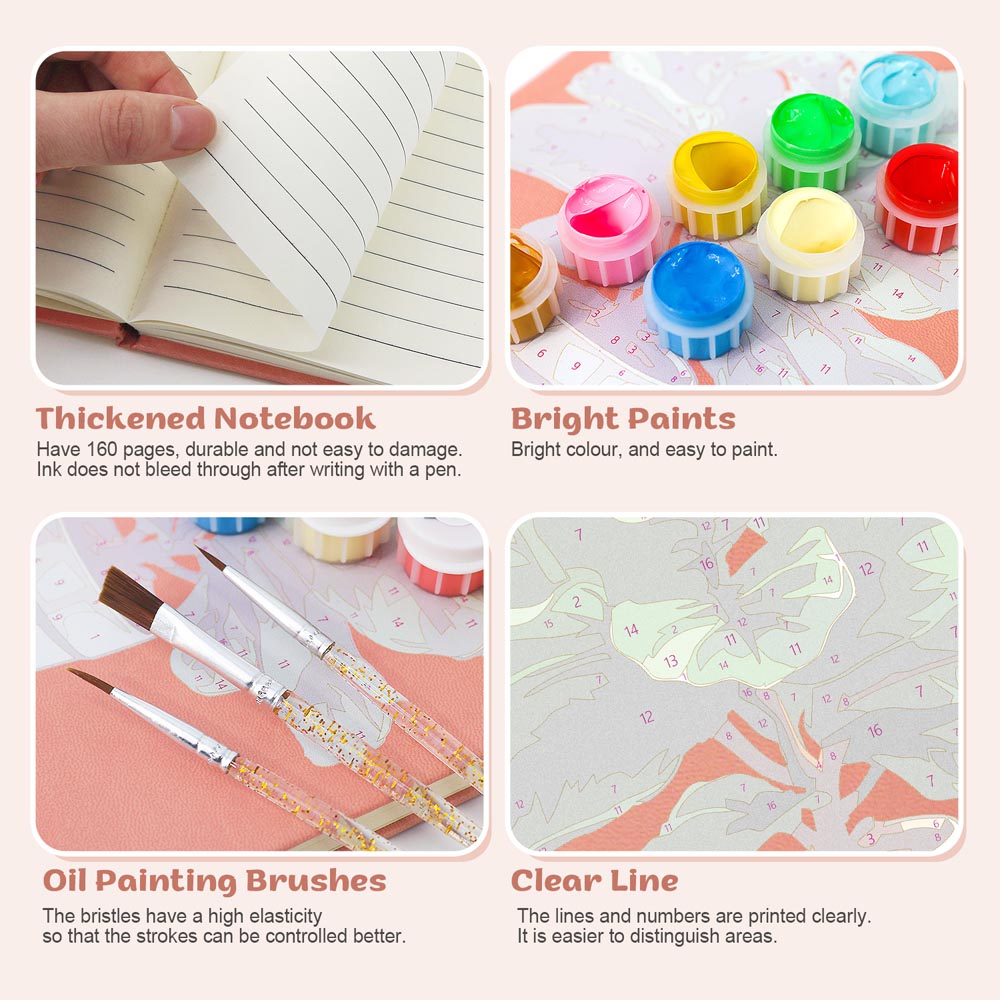 Unleash your creativity with our Paint by Numbers Hardcover Journal Notebook – a unique blend of DIY art and everyday practicality. The first page of the notebook features a fun paint-by-numbers design, allowing you to hand-paint your own stylish cover before using it as your personal journal.