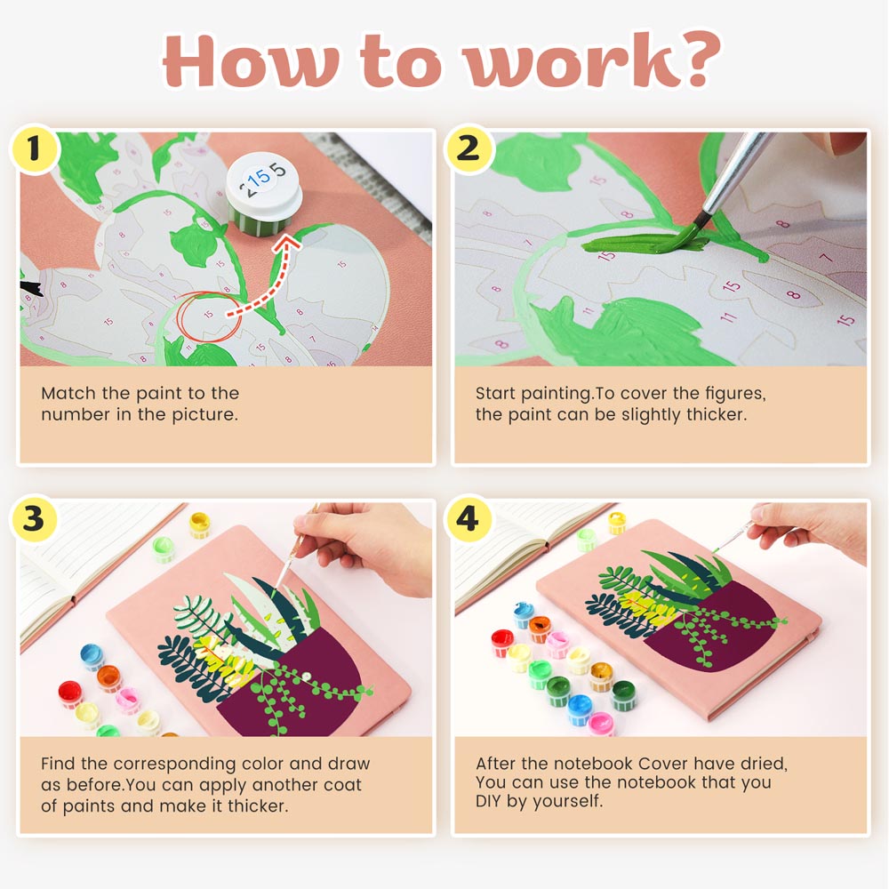 Unleash your creativity with our Paint by Numbers Hardcover Journal Notebook – a unique blend of DIY art and everyday practicality. The first page of the notebook features a fun paint-by-numbers design, allowing you to hand-paint your own stylish cover before using it as your personal journal.