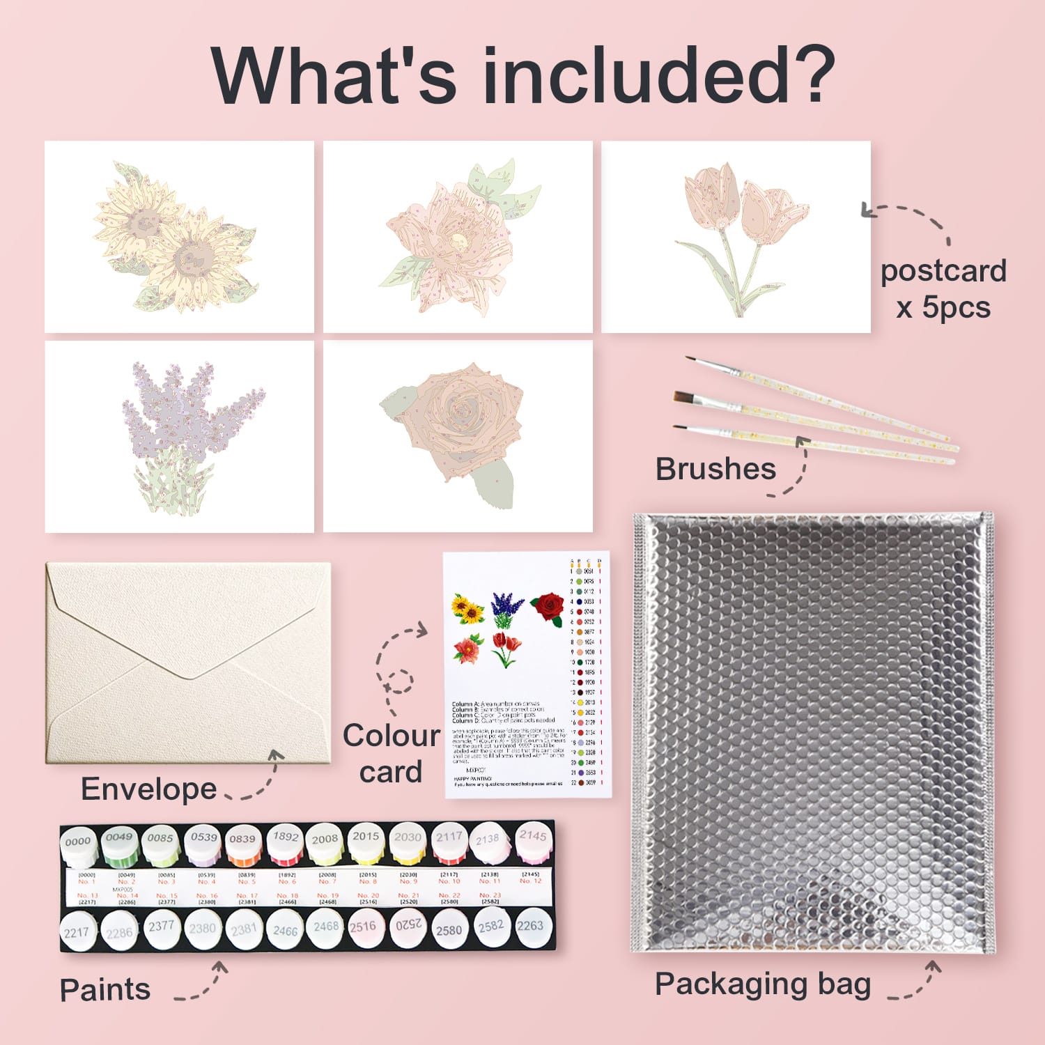 Discover the joy of creativity with our kits! These charming DIY sets combine the relaxing process of painting with the personal touch of a hand-painted postcard.