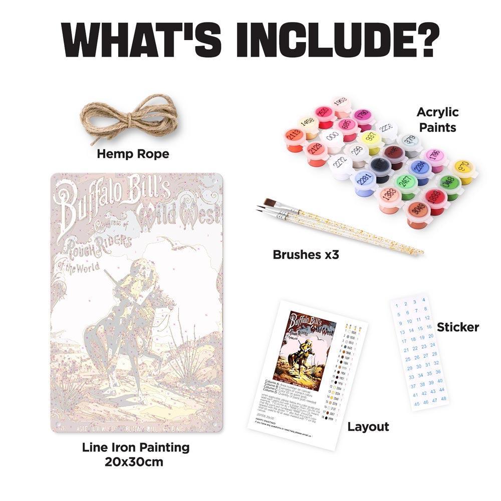 Our Paint by Numbers – Vintage Bar Art | Buffalo Bill’s Wild West blend nostalgic charm with hands-on creativity. Each kit features a pre-designed metal sign with numbered sections—just match the numbers to the paint colors and bring the scene to life with every brushstroke.