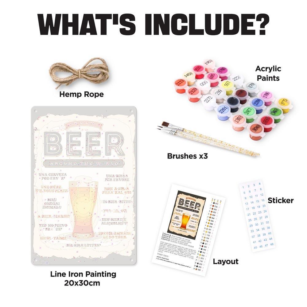 Our Paint by Numbers – Vintage Metal Bar Art | Beer Around the World blend nostalgic charm with hands-on creativity. Each kit features a pre-designed metal sign with numbered sections—just match the numbers to the paint colors and bring the scene to life with every brushstroke.