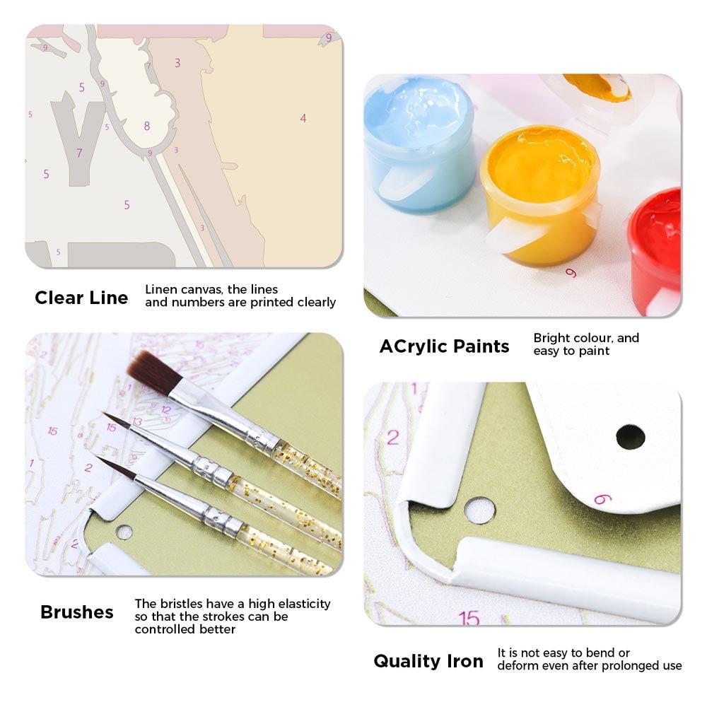 Whether you’re new to paint-by-numbers or a seasoned hobby artist, our all-in-one kits make painting effortless. Each canvas features clearly numbered outlines, matched acrylic paints, three brush sizes, and a simple step-by-step guide. Create stunning artworks in no time—ideal for relaxing, sparking creativity, and crafting personalized gifts!