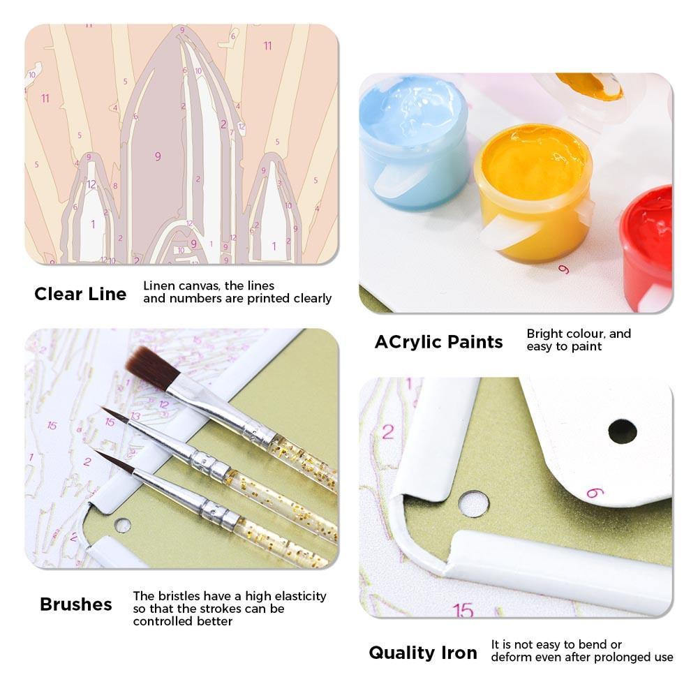 Whether you’re new to paint-by-numbers or a seasoned hobby artist, our all-in-one kits make painting effortless. Each canvas features clearly numbered outlines, matched acrylic paints, three brush sizes, and a simple step-by-step guide. Create stunning artworks in no time—ideal for relaxing, sparking creativity, and crafting personalized gifts!