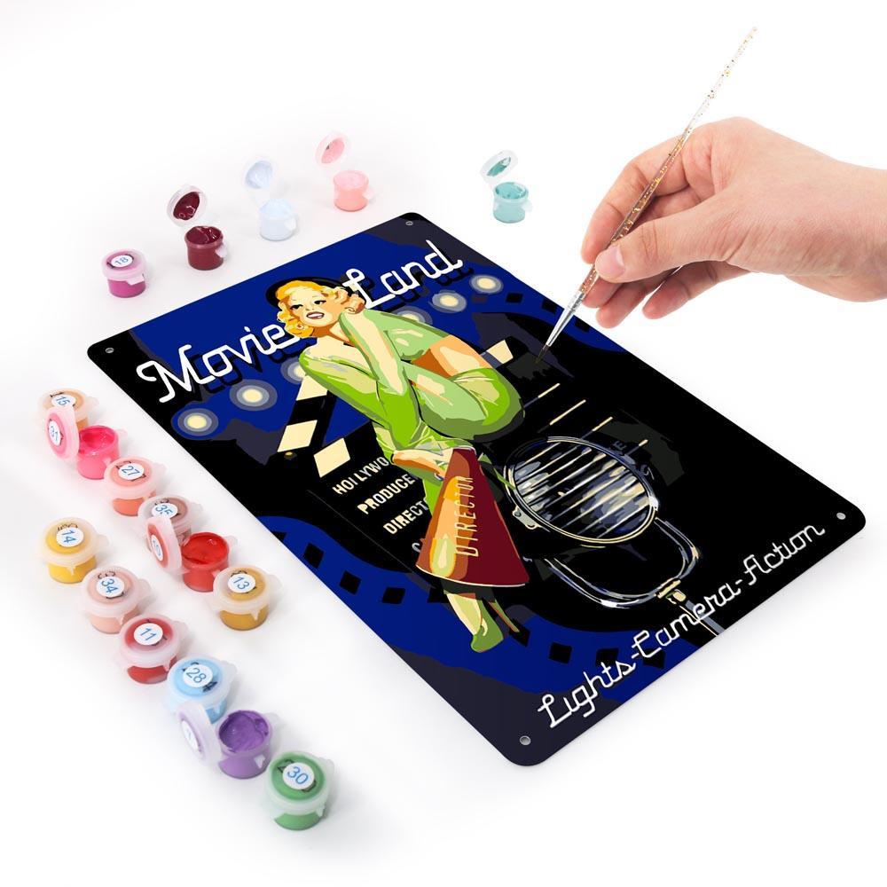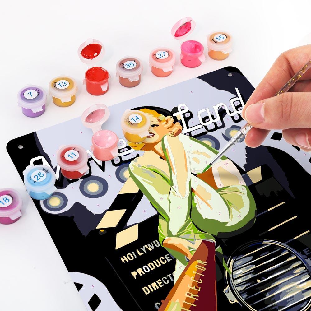 Our Paint by Numbers – Vintage Movie Art | Hollywood Glam blend nostalgic charm with hands-on creativity. Each kit features a pre-designed metal sign with numbered sections—just match the numbers to the paint colors and bring the scene to life with every brushstroke.